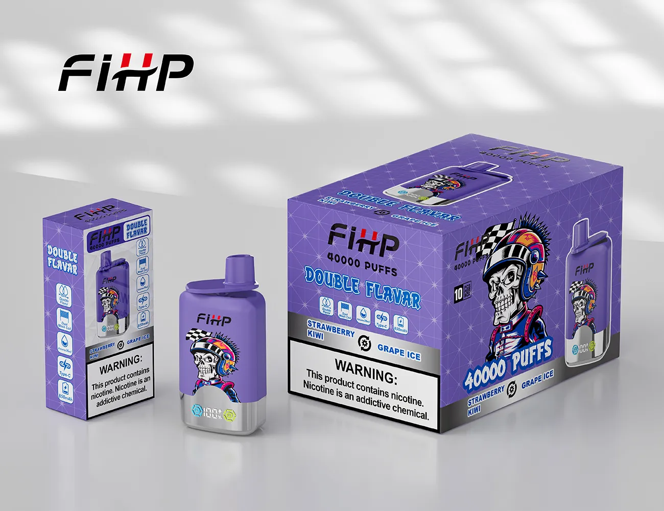 グレープ・アイス / ストロベリー・キウイ(ニコチンベイプ5%)|FiHP デュアル
